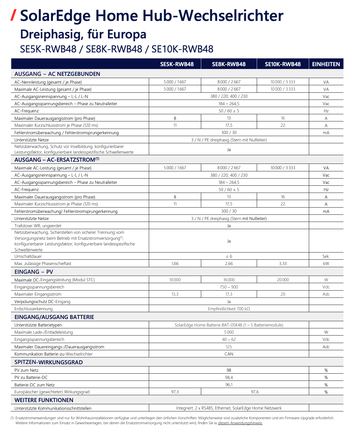 - Erhöhte Systemkapazität durch den Anschluss mehrerer Batteriemodule pro Wechselrichter