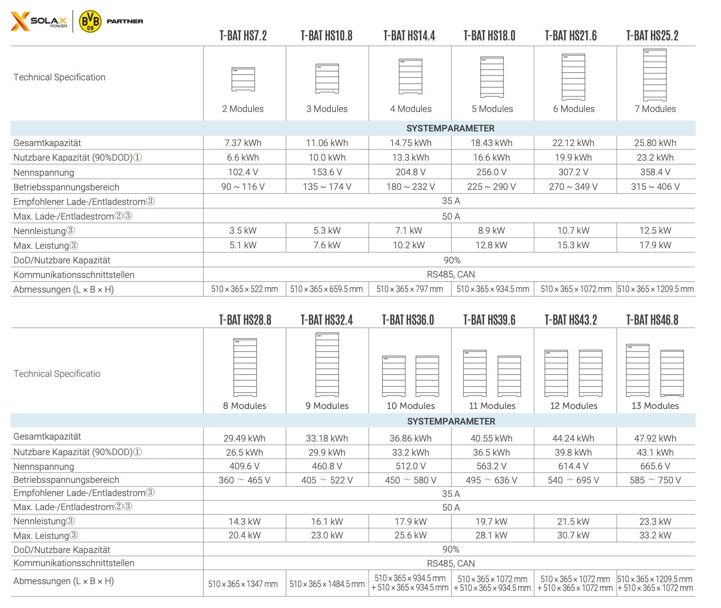 - Weite Kapazitätsbereiche von 7.3 bis 47.9kWh