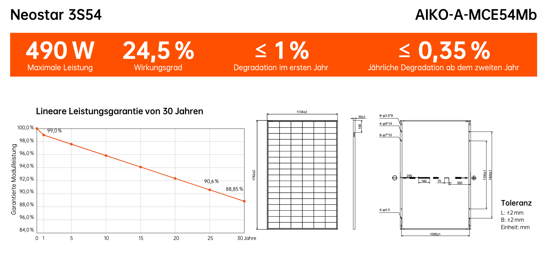 - Lange Garantielaufzeit: 25 Jahre Produktgarantie und 30 Jahre Leistungsgarantie