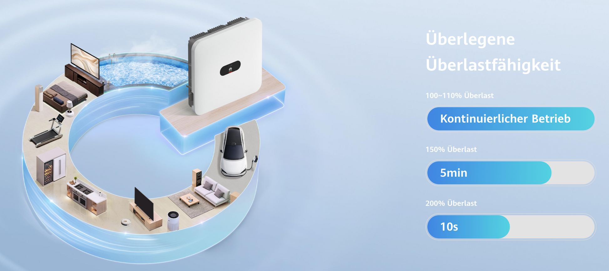 Die bemerkenswerte Widerstandsfähigkeit des Systems gegenüber Einschaltströmen sorgt für einen stabilen Betrieb, selbst bei unerwarteten Leistungsspitzen. Versorge dein Zuhause damit sicher und netzunabhängig mit Strom und mach dir keine Gedanken mehr über Stromausfälle.